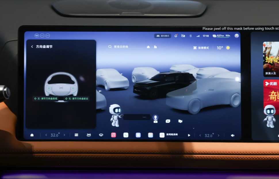 内饰设计布局还是印象中的样子,撞色内饰营造出一个居家温馨的乘车空间,相比于当前常见的内饰设计风格布局,2026款小鹏G9的中控台造型更加多变一些,中控台上继续搭载三块大屏,14.96英寸中控屏和14.96英寸副驾娱乐屏组成联屏设计,相较于10.25英寸液晶仪表盘,这两款屏幕的位置略微靠前一些。