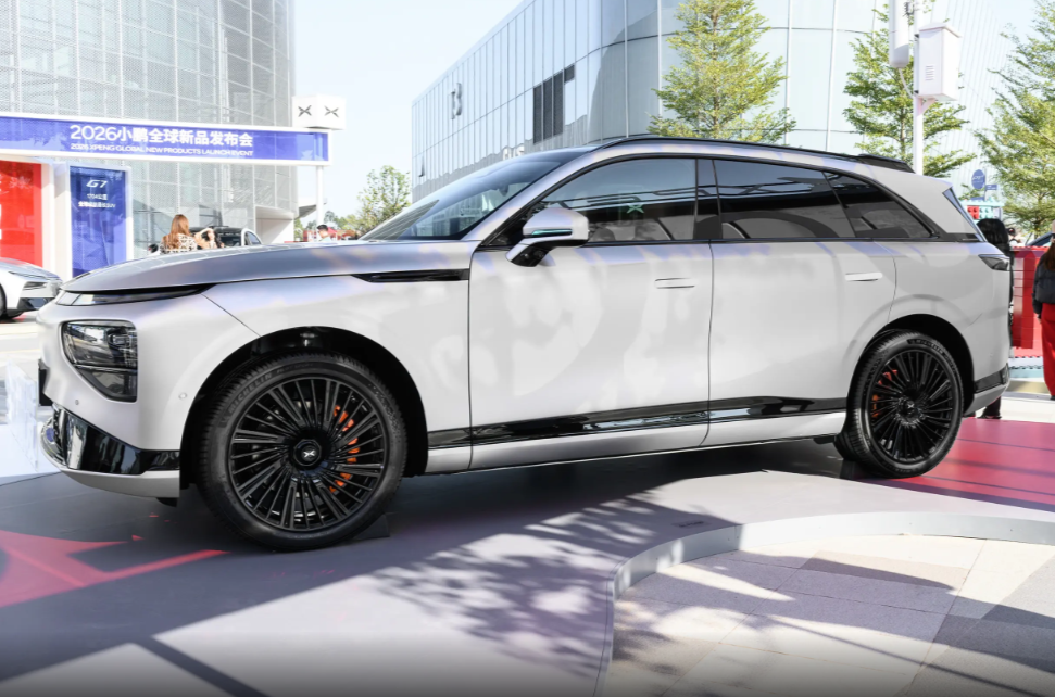 车身长度4891mm,轴距2998mm,彰显出一款中大型SUV该有的体量感,相比于同级别车型而言,个人觉得2026款小鹏G9的车身侧面造型更加时尚一些,行李架、窗框、轮毂多处都经过熏黑处理,再次强化车身运动气息。车尾形态上宽下窄,贯穿尾灯造型规整,内部结构精致,点亮之后更是亮点十足,下包围处加以高亮熏黑饰板进行修饰,以此呼应整体设计风格,未来一段时间里,这套经典外观设计语言应该都不会做出太大调整。
